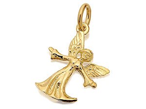 9ct Gold Angel Solid Charm - 16mm