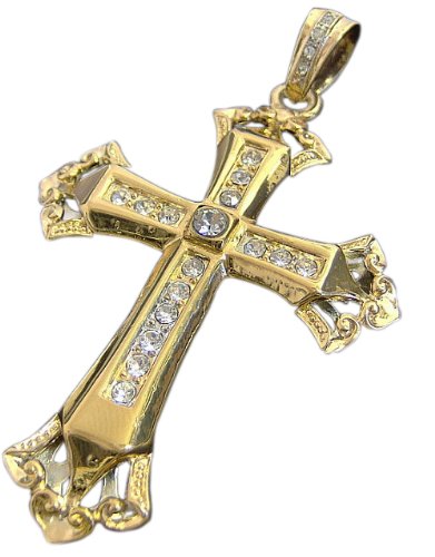 These have very detailed design, with only the finest Austrian crystals that GLISTEN LIKE REAL DIAMONDS! finished off with the highest level of 24K GOLD PLATING - All the stones on these crosses are huge and will definetely add lots of shine to your style!The cross comes with a Hip Hop 32 inch length Phat rope Chain!.