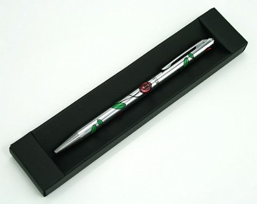 Rennie Mackintosh rose patterned ballpoint pen, with a twist top. Beautifully presentated in a gift box. 130mm long.