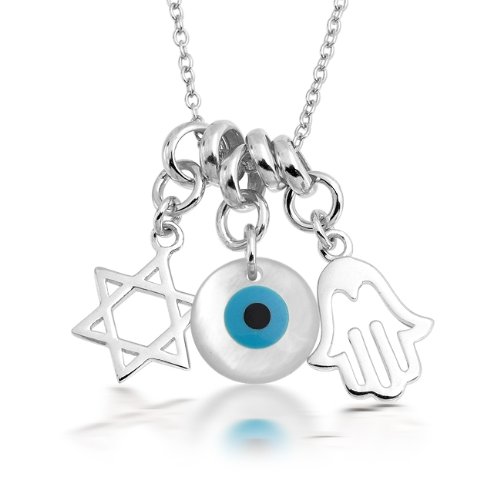 Bling Jewelry Sterling Silver Hamsa Hand Evil Eye Star Of David Multicharm Pendant Necklace