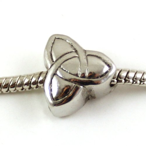 A silver plated bead with a Celtic triquetra symbol engraved on it, to fit Pandora and other similar bracelets. The hole is screw threaded.
