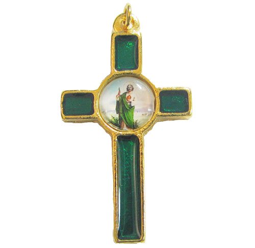 Green St. Jude Catholic Rosary cross crucifix 36mm