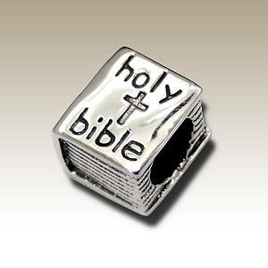 1 x Solid Sterling Silver Stamped 925 Holy Bible Charm Bead, Slide On slide Off Charm Bead. Will fit pandora, Troll Chamilia style charm bracelets.