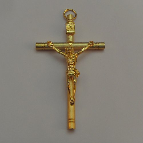 Catholic large gold crucifix rosary cross pendant 9cm