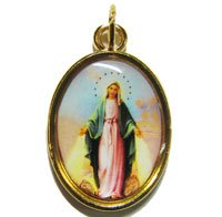 Catholic rosary medal - Miraculous Mary image - gold metal 20mm