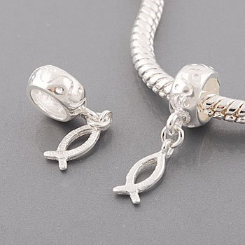 1 x Religous Fish Sign Solid Sterling Silver Stamped 925, Slide On slide Off Charm Bead. Will fit pandora, Troll Chamilia style charm bracelets. Size about 4*21mm, weight about 1g and hole size about 5mm.