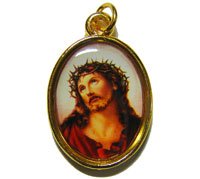 Catholic rosary medal - Sacred face of Jesus image - gold colour metal 20mm